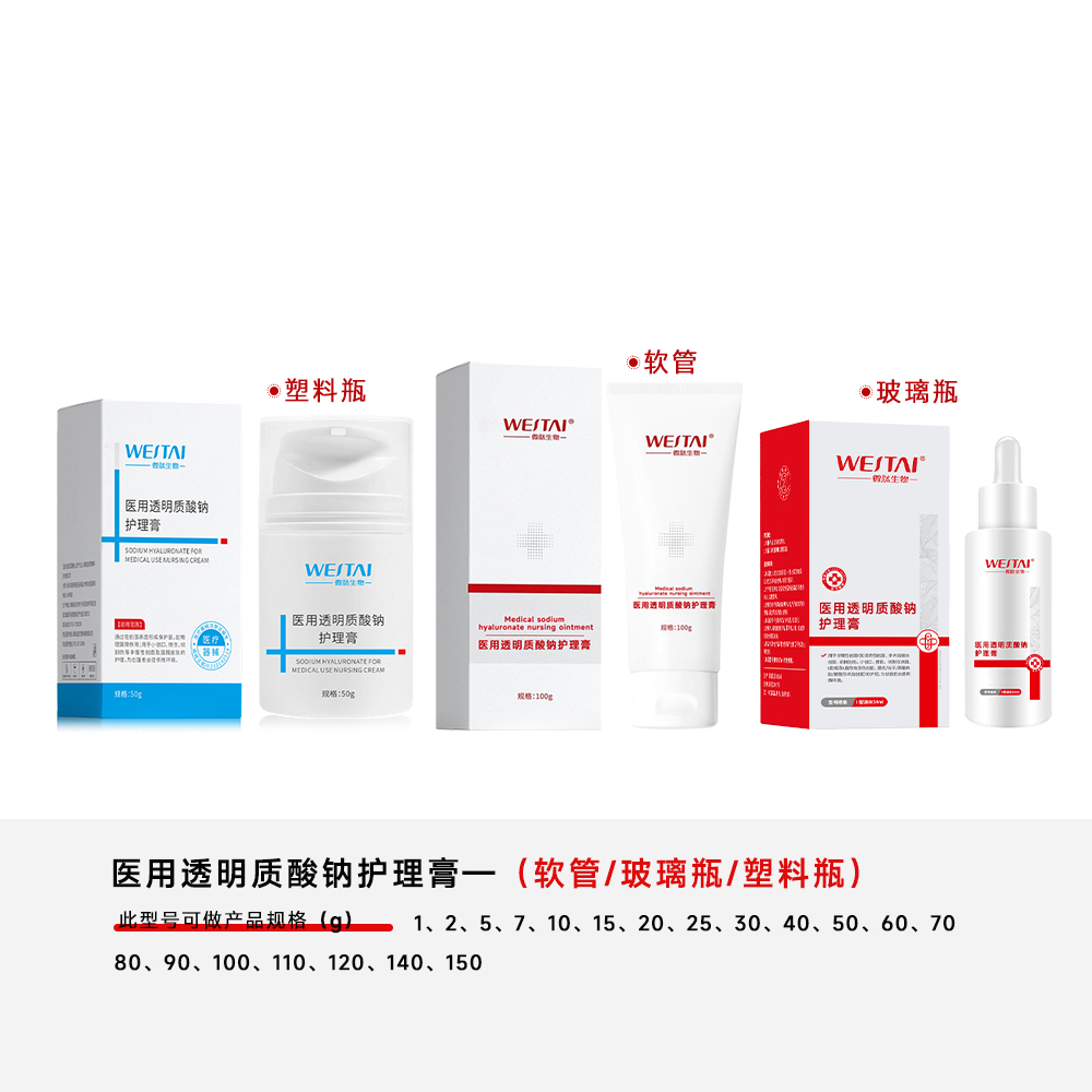 1、核心目标不同:普通护肤品旨在维护健康皮肤的状态,追求美白、抗老等美化功能;而医用护理膏的首要目标是辅助创面愈合,修复已受损的皮肤屏障,功能更具基础性和治疗导向性。2、成分与配方的纯粹性:医疗级产品对成分的纯度、浓度、无菌标准和配方精简度有极高要求。它以高纯度、小分子量的透明质酸钠为核心,通常不含香精、色素、复杂防腐剂等潜在刺激源,最大限度降低过敏风险。