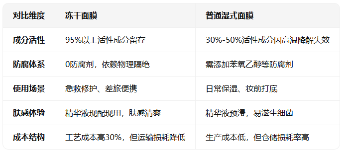 二、冻干面膜VS普通面膜:一场“鲜活”与“保质”的博弈