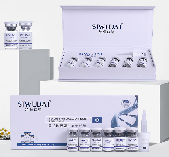 诗维蓝黛冻干粉采用-40℃低温冻干技术,确保寡肽、血清白蛋白等活性成分稳定性达98%以上,配合纳米级脂质体载体技术,使大分子胶原蛋白透皮吸收率从3%提升至18%。例如,“蓝铜胜肽舒缓冻干粉”通过三肽-1铜(蓝铜胜肽)促进胶原蛋白合成,光电术后修复效率提升40%;“重组胶原蛋白冻干纤维”作为二类械字号产品,经湘械注准认证,在抗皱紧致、疤痕修复领域效果显著,临床测试显示使用后皮肤弹性指数提升35%,法令纹深度淡化0.25mm。