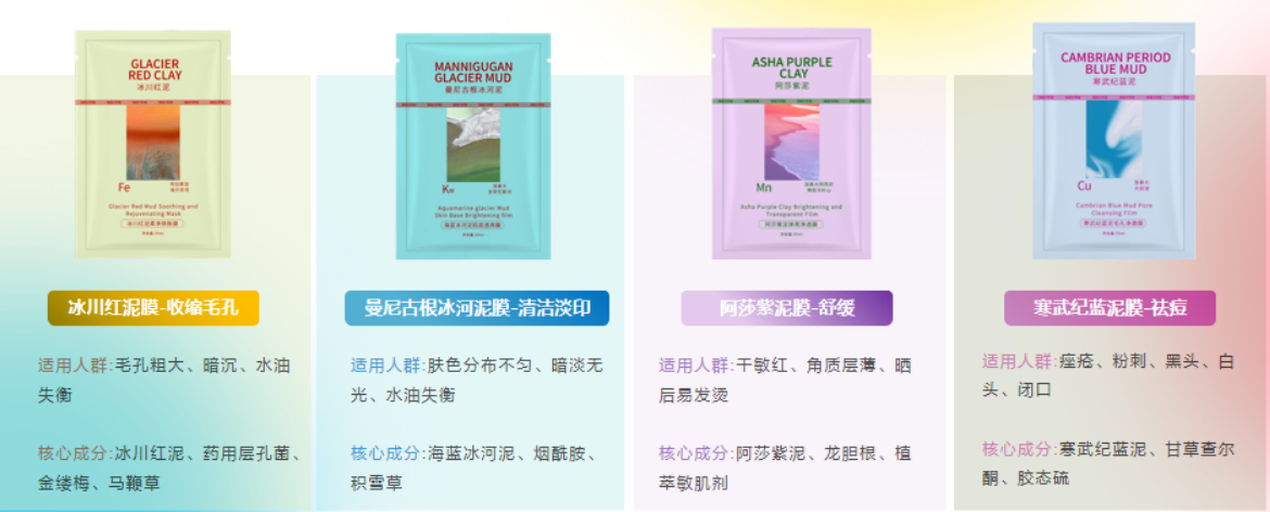 一、微肽生物多巴胺彩色矿物泥膜系列——每一贴都是鲜活的矿物原浆。